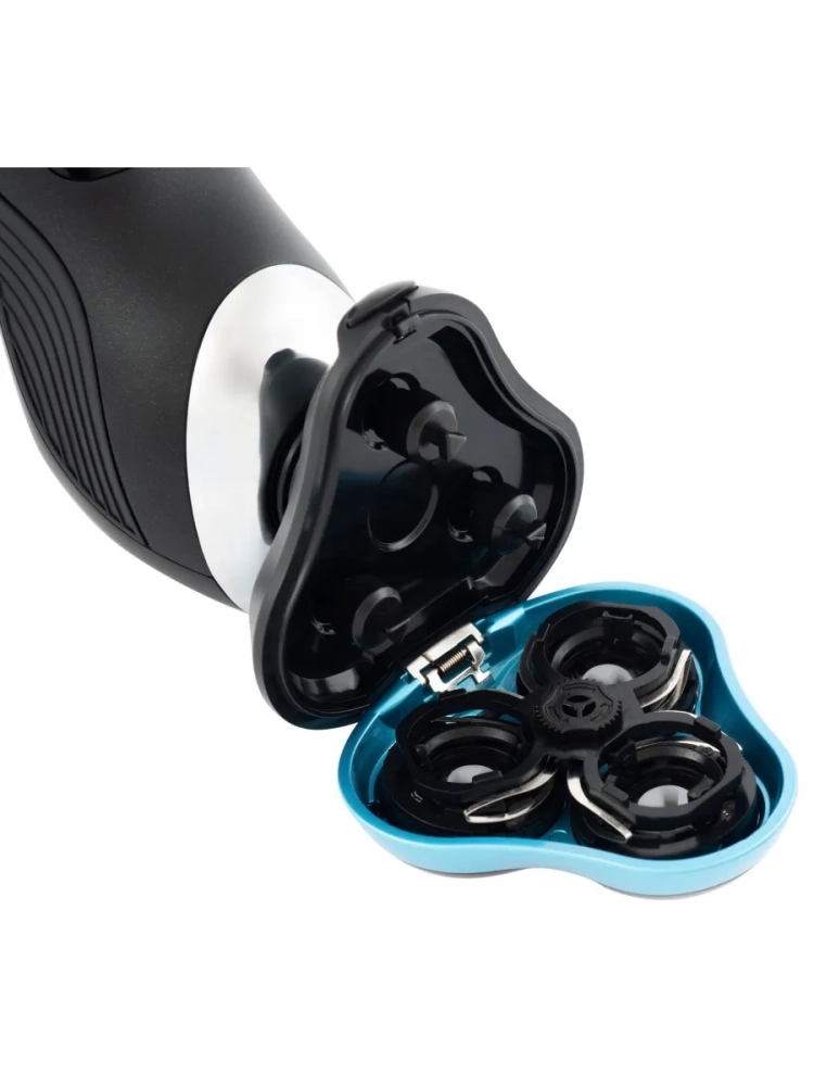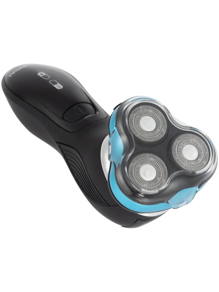 Бритва роторная Hyundai H-SH8085 черный, бритвенных головок: 3шт, питание от аккумулятора, встроенный триммер, зарядное устройство, защитная каппа(колпачек), щеточка для чистки