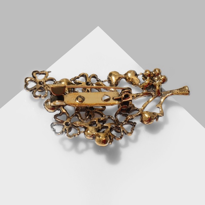 Брошь «Цветочная лоза», цвет изумрудный в чернёном золоте