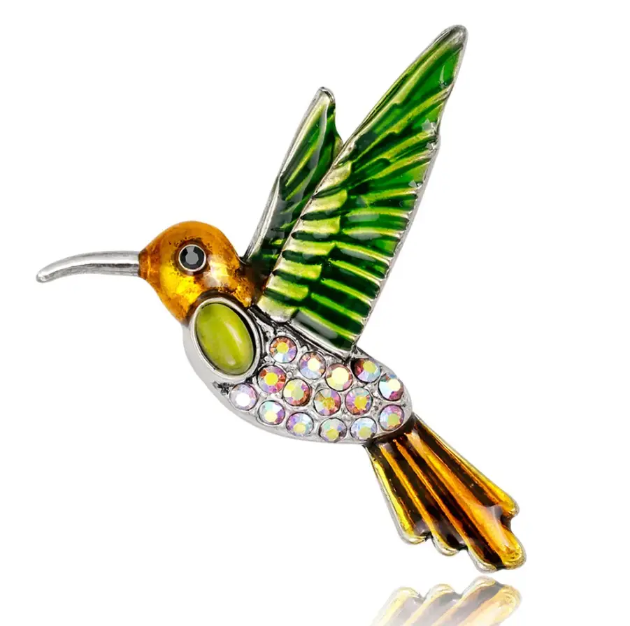Брошь Колибри Птичка со стразами и эмалью