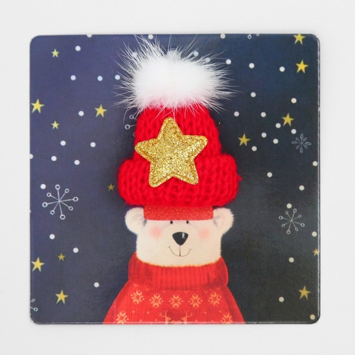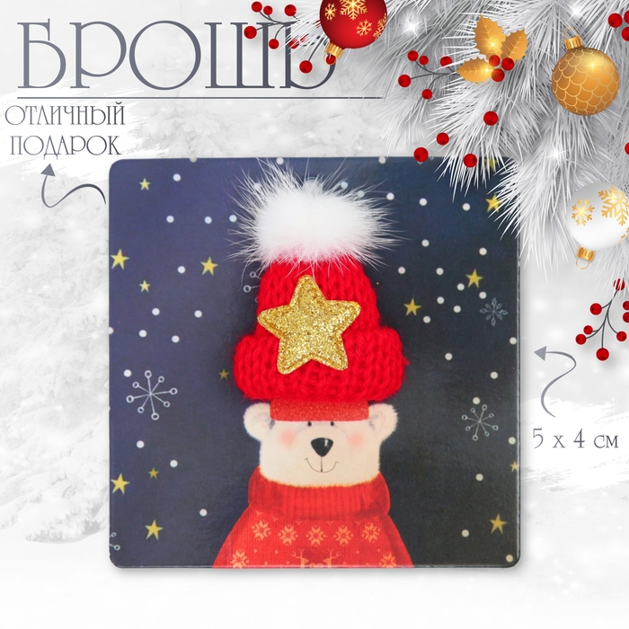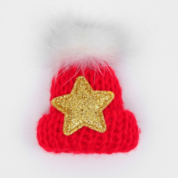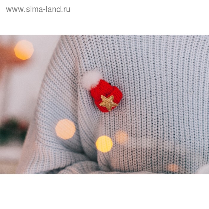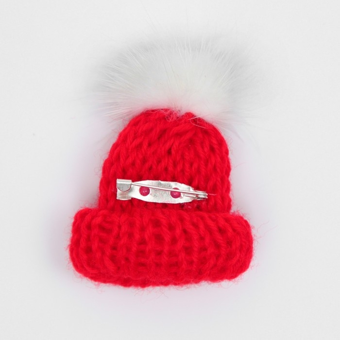 Брошь новогодняя "Шапочка тёплая", цвет красный