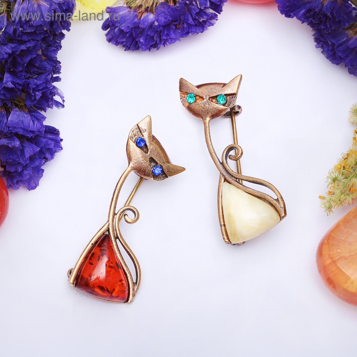 Брошь «Янтарь» кот треугольный, цвет МИКС в бронзе