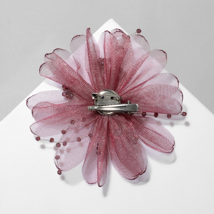 Брошь-заколка текстильная «Цветок» пион, цвет серый