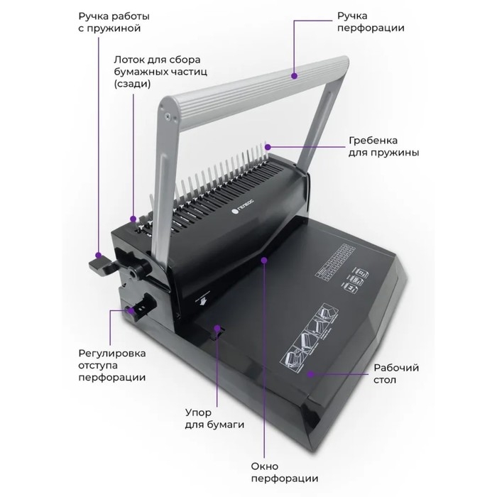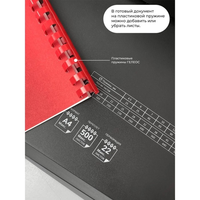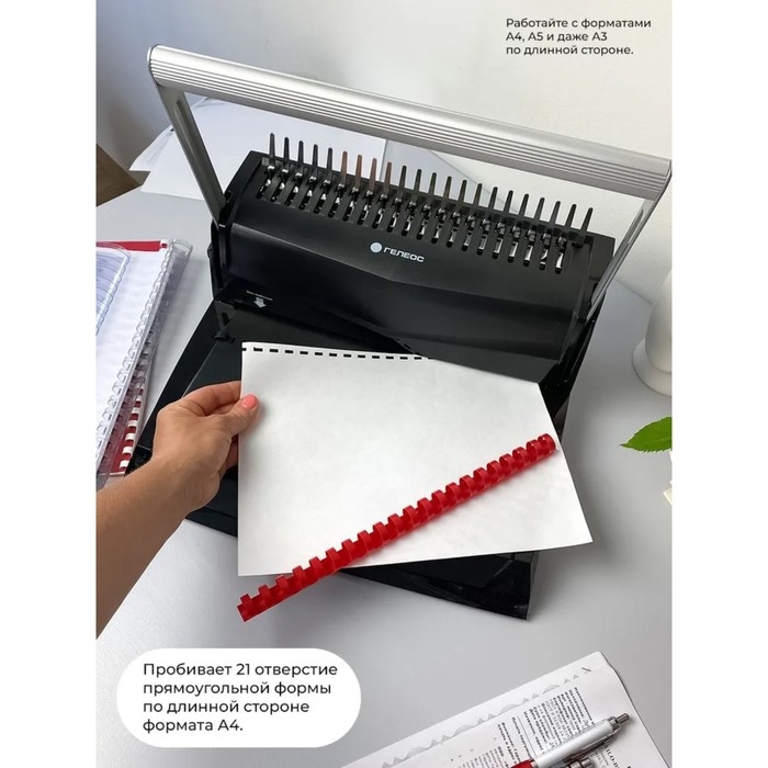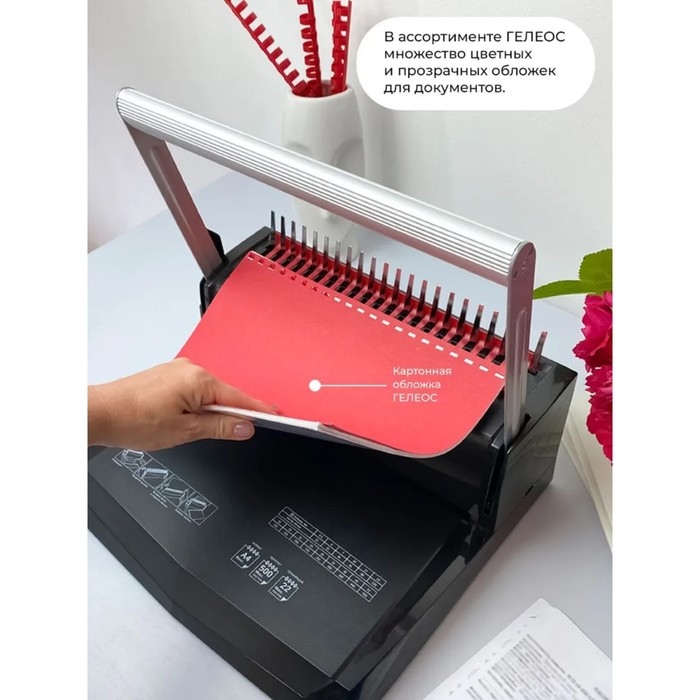 Брошюровщик для пластиковой пружины Гелеос, перфорация до 22 листов, переплетение до 500 листов