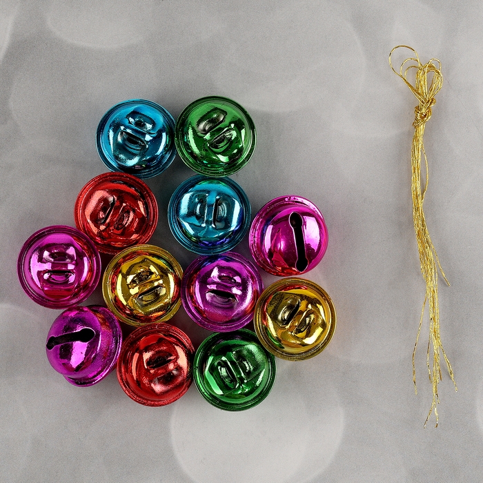 Бубенчики, набор 12 шт., размер 1 шт. — 2 × 2 см, цвет красный, жёлтый, розовый, синий, зелёный