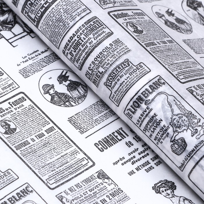 Бумага жиростойкая парафинированная "Газета французская", 0,38х10 м