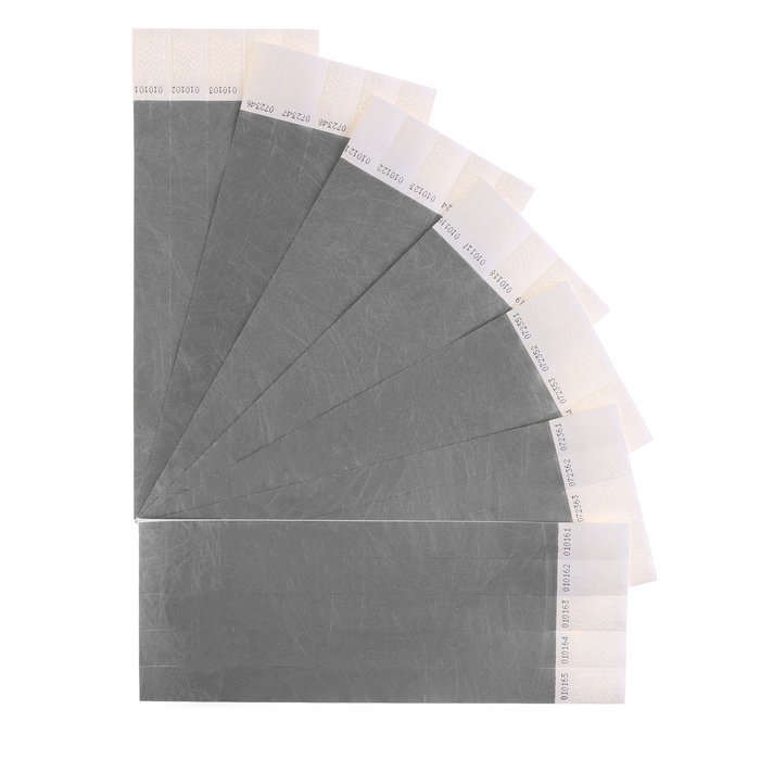 Бумажный контрольный браслет "Серебряный" TYVEK 100 штук
