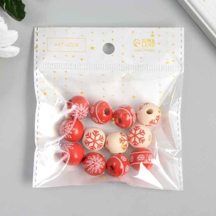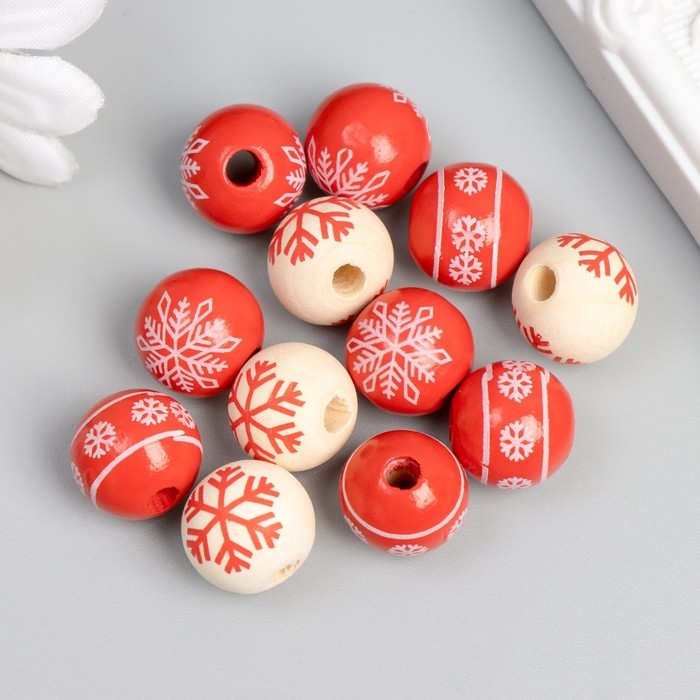 Бусина дерево для творчества "Снежинки" d=1,6 см набор 12 шт