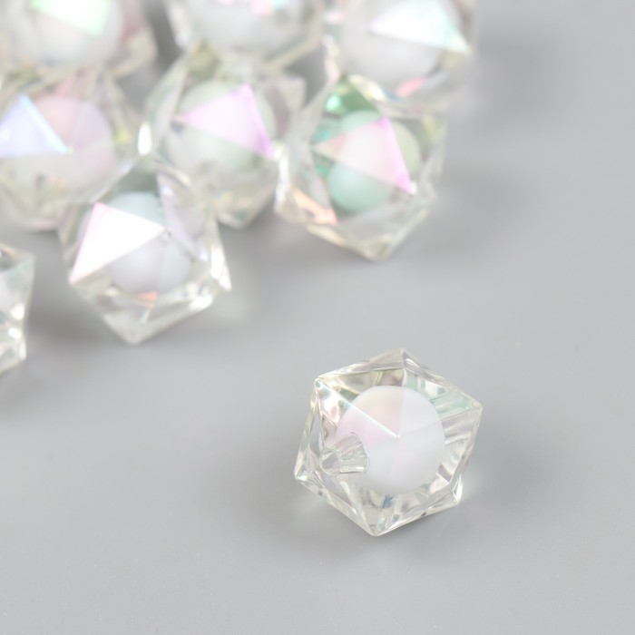 Бусина для творчества пластик "Кристалл-многогранник белый" набор 10 шт. 1,6х1,6х1,6 см