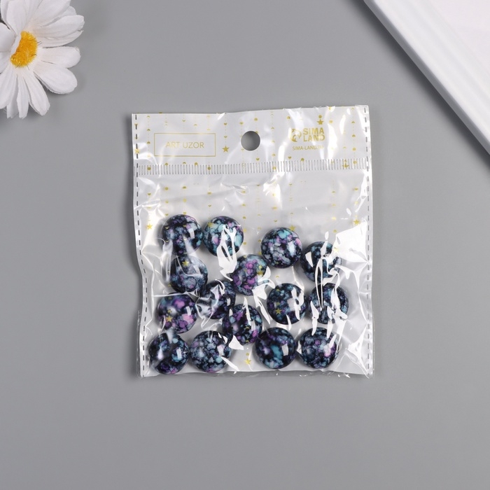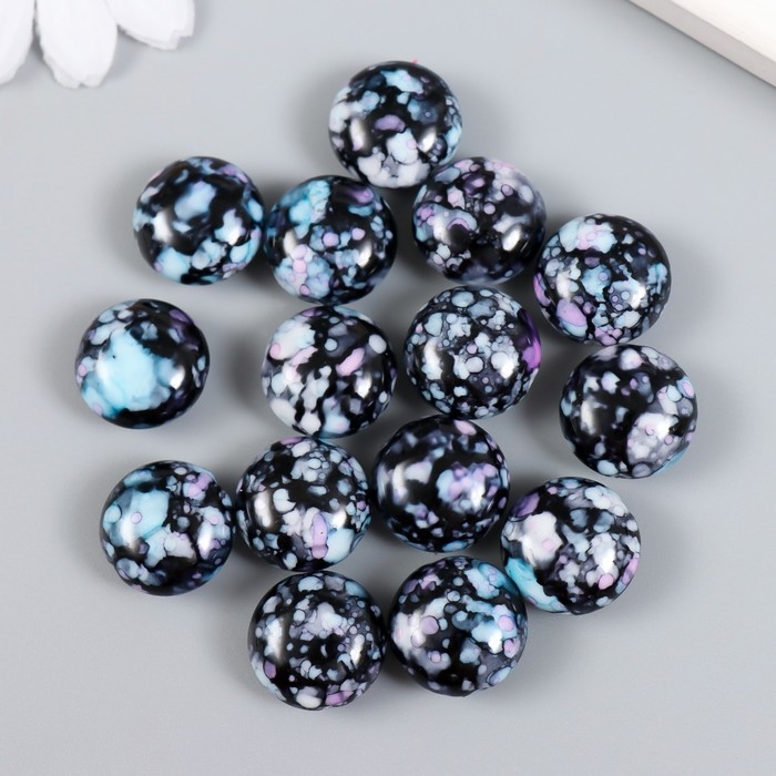 Бусины для творчества пластик "Мраморные. Фиолетово-голубой" набор 15 шт 1,7х1,7х1 см