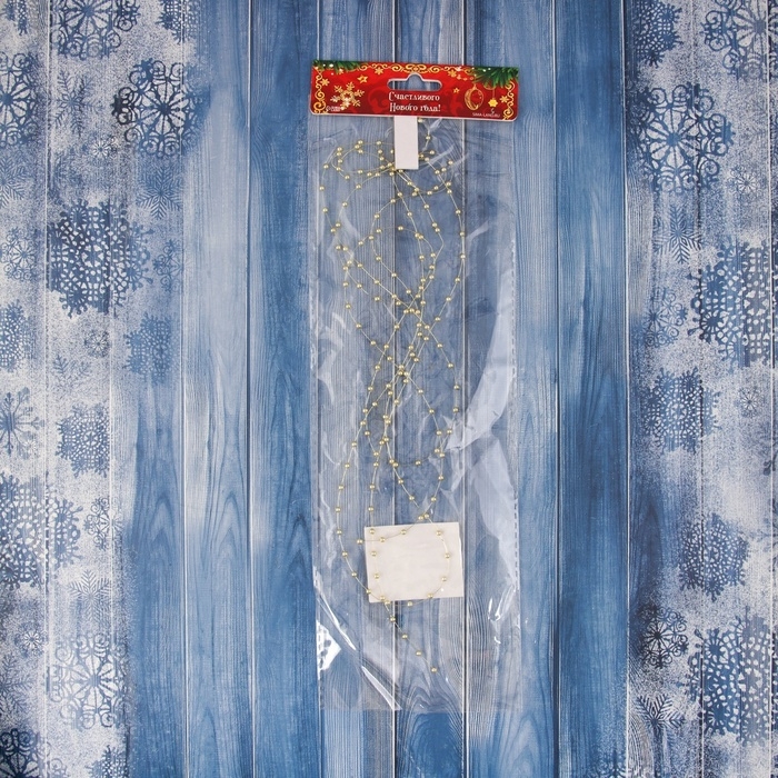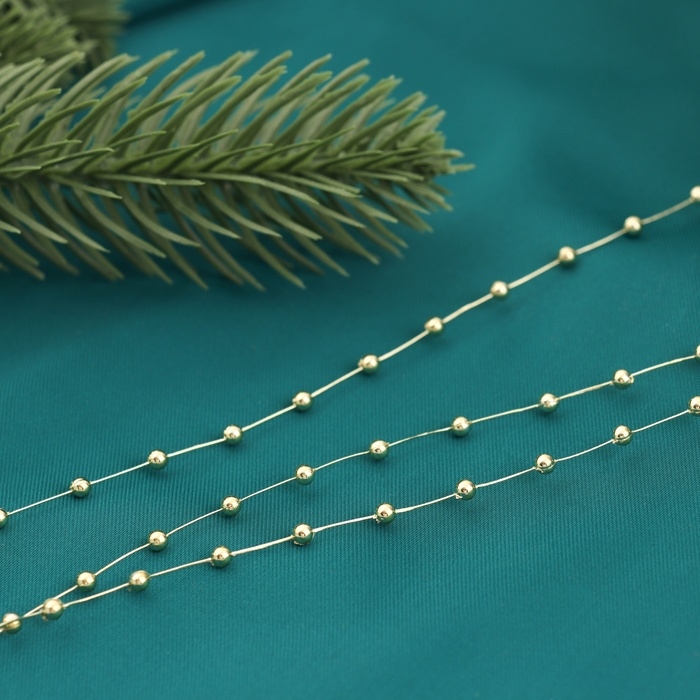 Бусы на ёлку 2 м d-2 мм "Бусины мини нити" золото