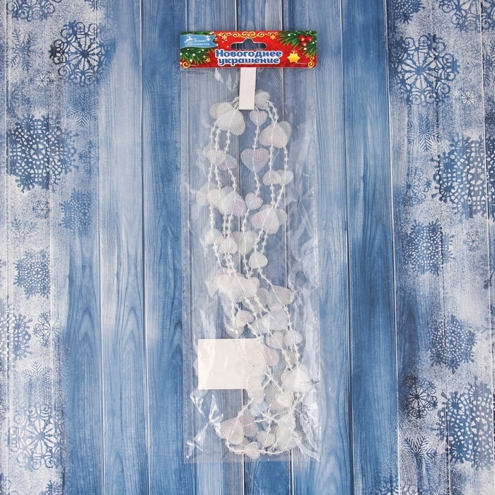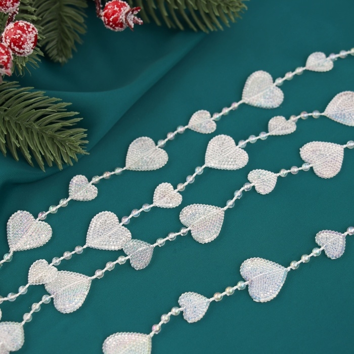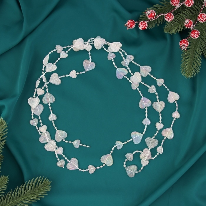 Бусы на ёлку 2 м d-20 мм "Сердца нити" прозрачный перламутр
