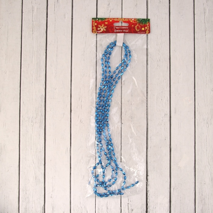 Бусы на ёлку 2 м d-3 мм "Овалы грани" синий
