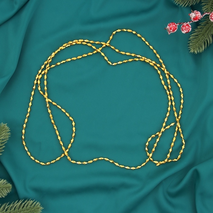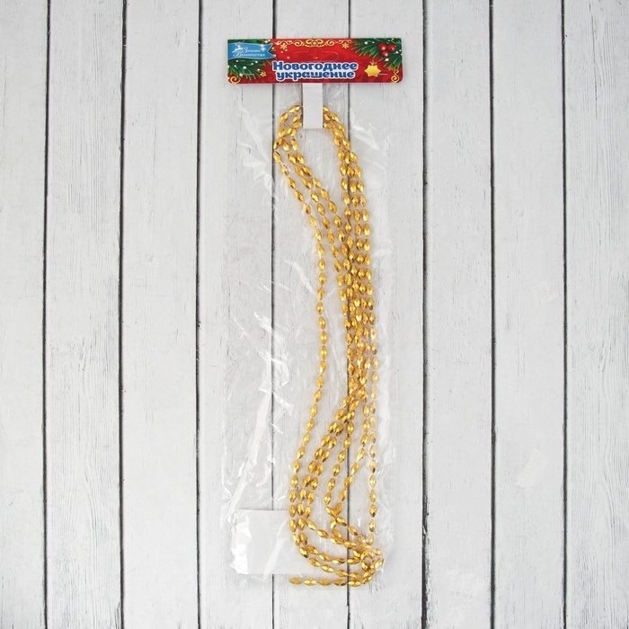 Бусы на ёлку 2 м d-3 мм "Овалы грани" золото