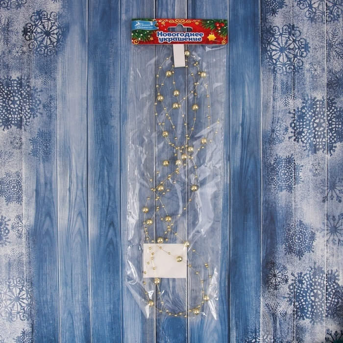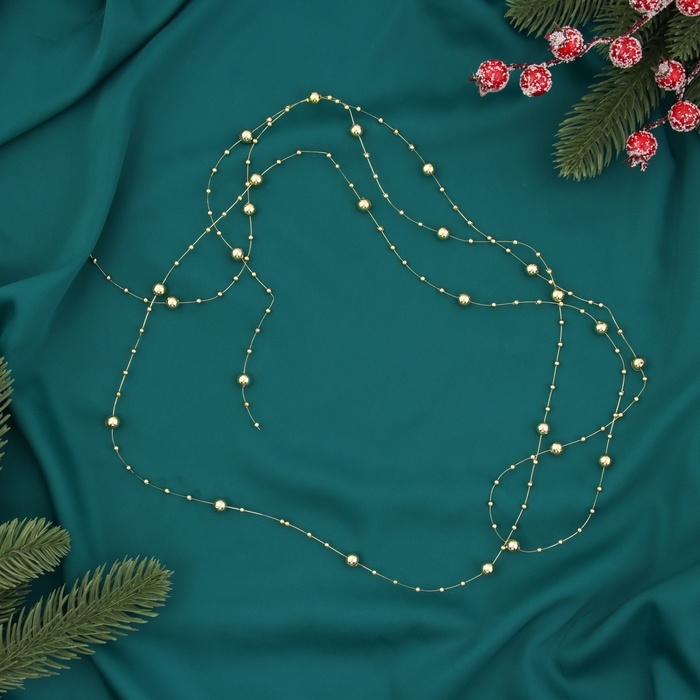 Бусы на ёлку 2 м d-7 мм "Бусины нити" золото