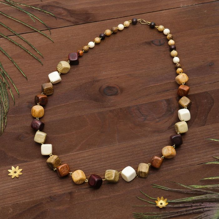 Бусы ручная работа, деревянные «Кубик метал», цветные, 55см