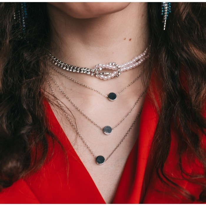 Бусы с жемчугом «Бусина» два ряда №4+6, цвет белый в серебре, 50 см