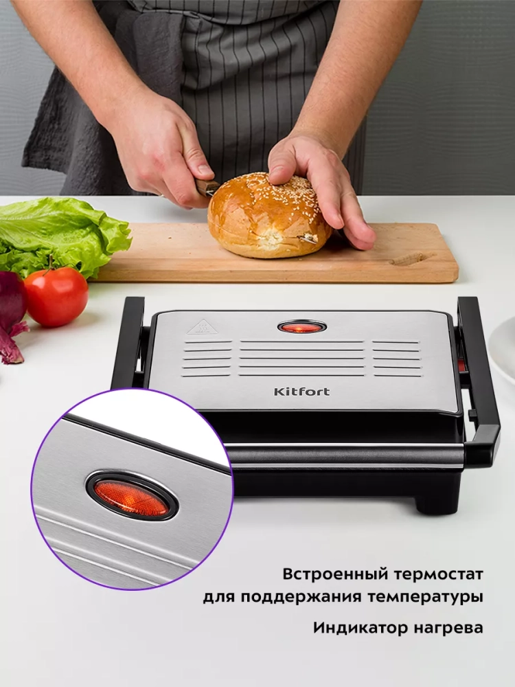Бутербродница Kitfort КТ-3604 предназначена для приготовления бутербродов, панини, сэндвичей, тостов, жарки сосисок и овощей.