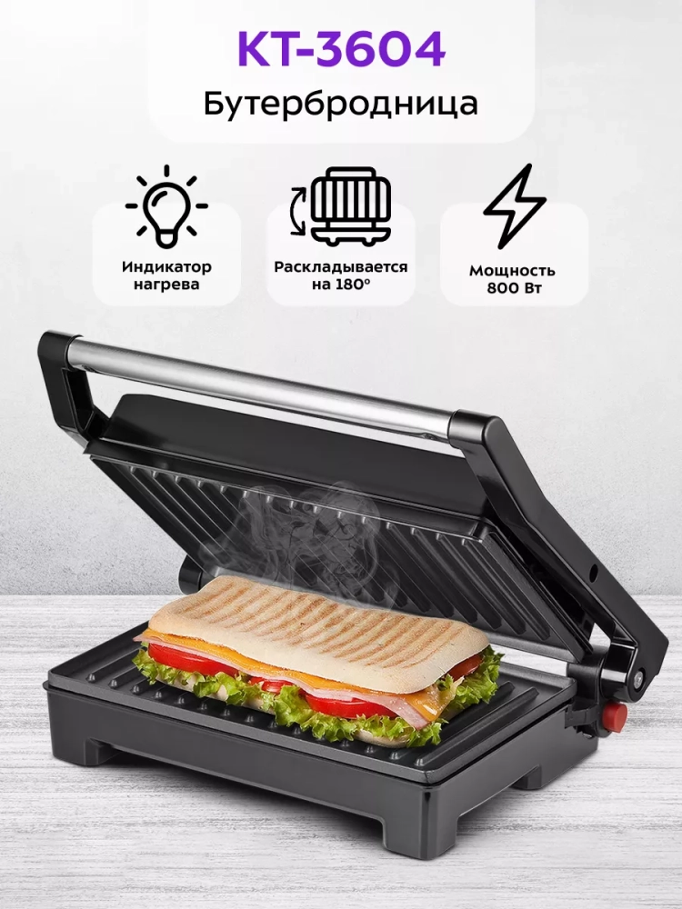 Бутербродница электрическая сендвичница КТ-3604 - 800 Вт