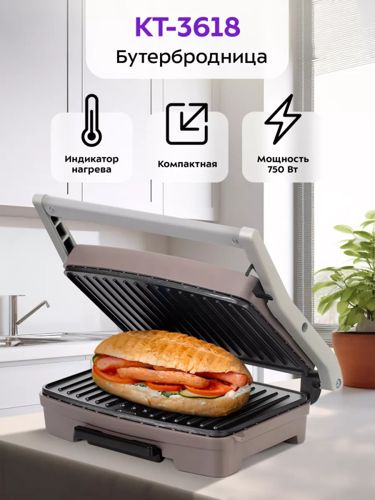 Бутербродница электрическая сендвичница КТ-3618 -750 Вт