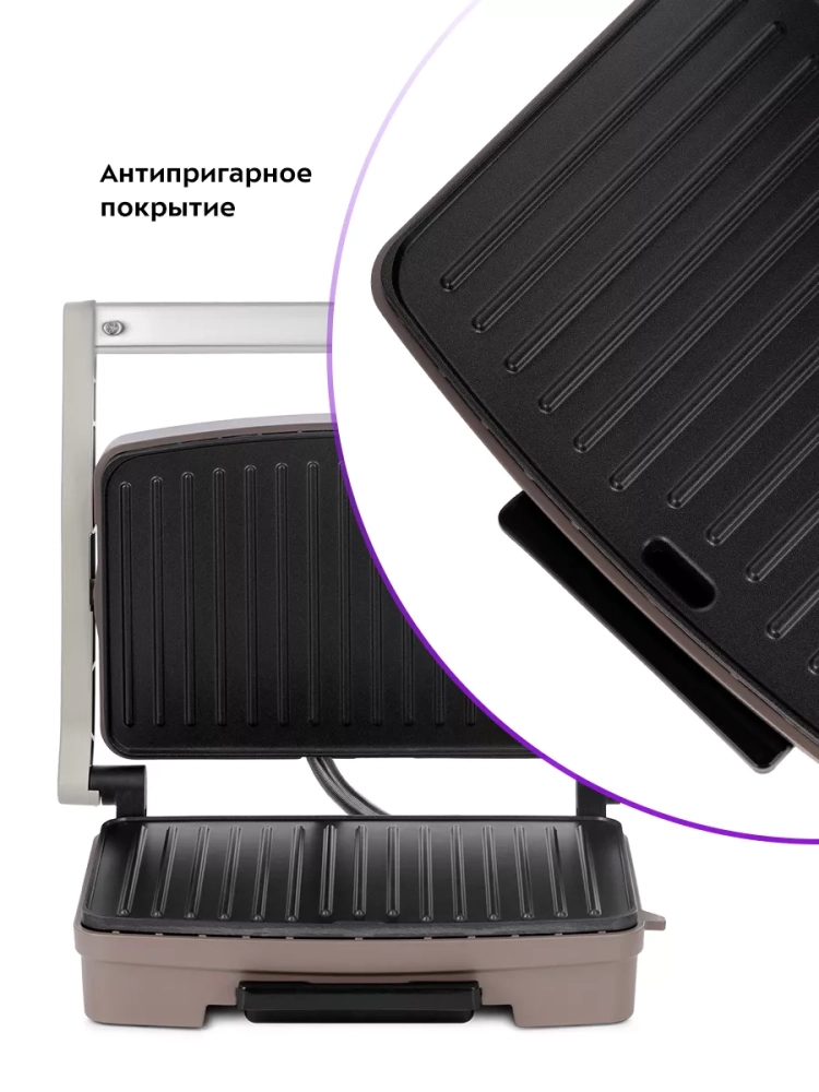 На панели нанесено антипригарное покрытие, что позволяет готовить с минимальным количеством масла или без него. Такое покрытие также облегчает процесс чистки панелей.