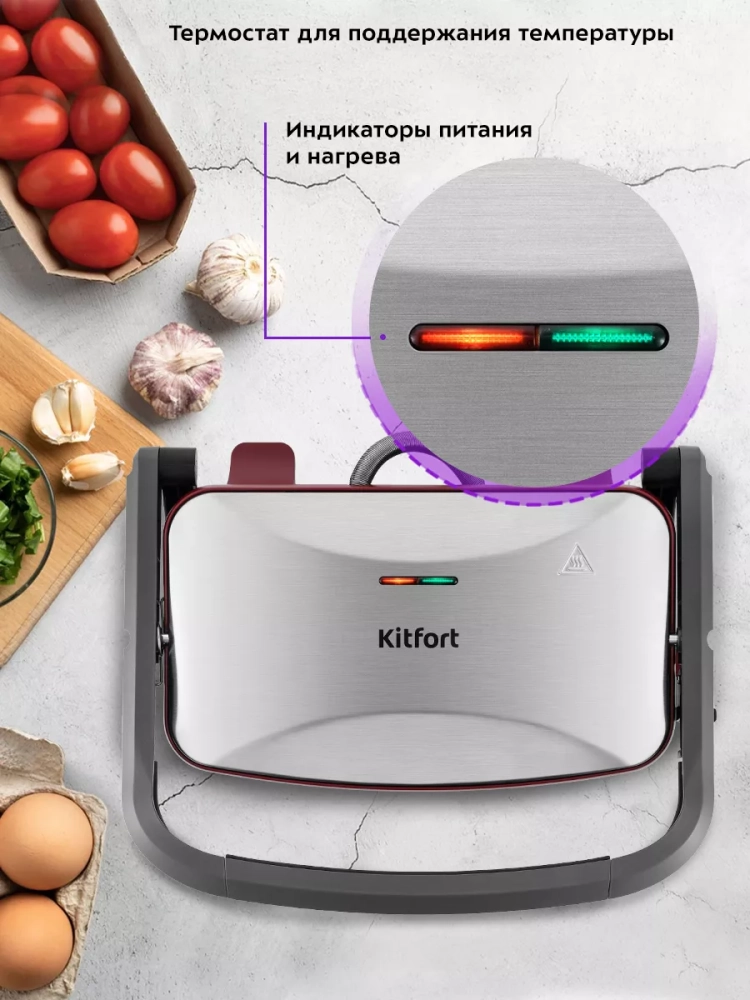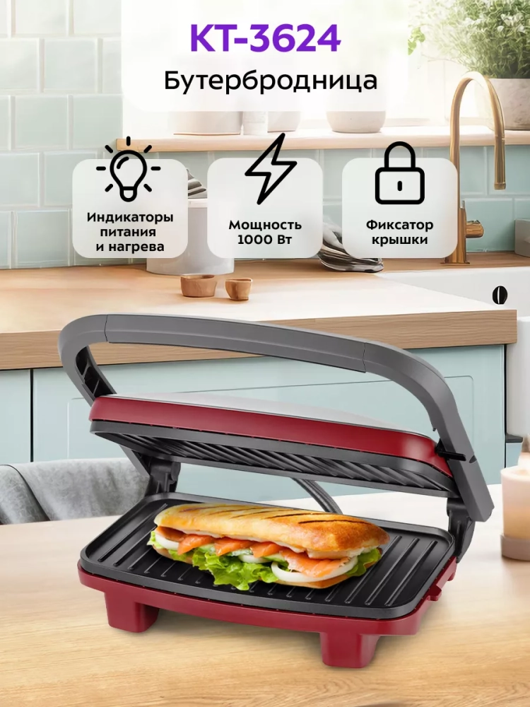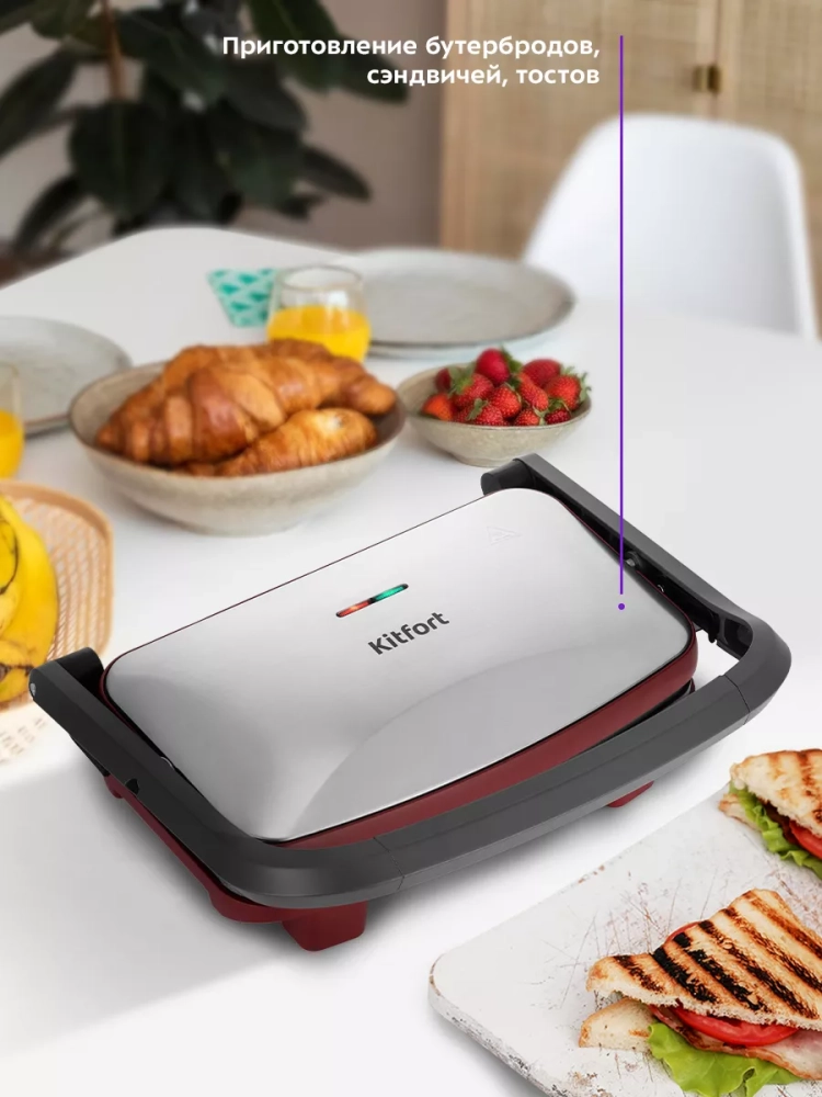 Бутербродница Kitfort КТ-3624 предназначена для приготовления бутербродов, панини, сэндвичей, тостов, жарки сосисок и овощей.