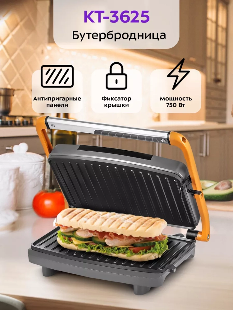 Бутербродница электрическая сендвичница КТ-3625 - 750 Вт