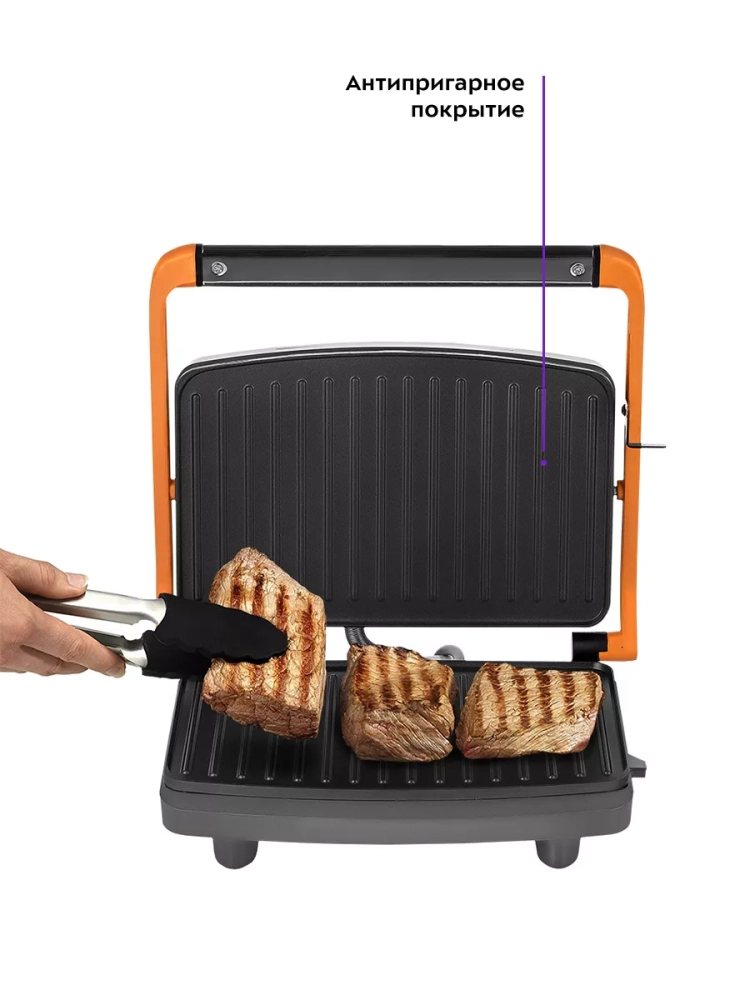 На панели нанесено антипригарное покрытие, что позволяет готовить с минимальным количеством масла или без него. Такое покрытие также облегчает процесс чистки панелей.