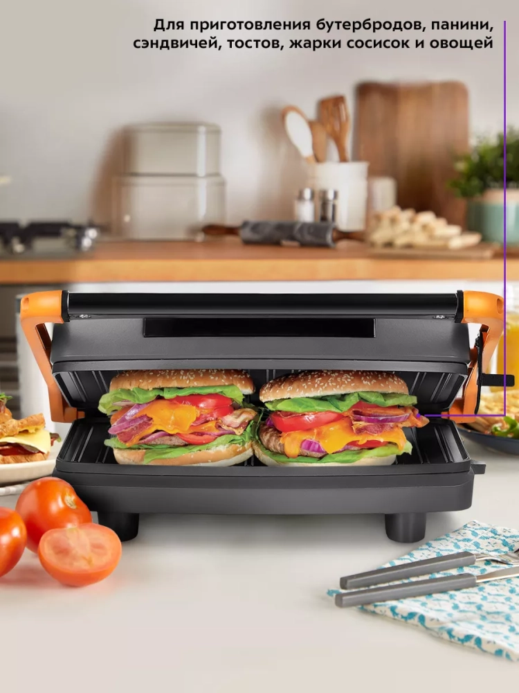 Бутербродница Kitfort КТ-3625 предназначена для приготовления бутербродов, панини, сэндвичей, тостов, жарки сосисок и овощей.