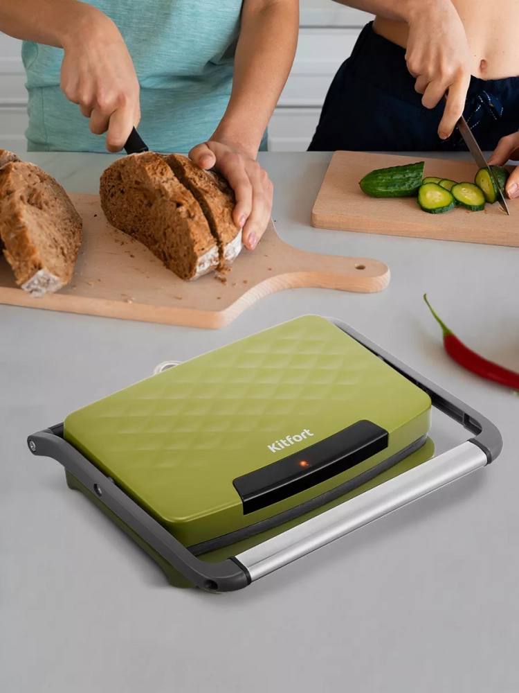 Бутербродница Kitfort КТ-3626 предназначена для приготовления бутербродов, панини, сэндвичей, тостов, жарки сосисок и овощей.