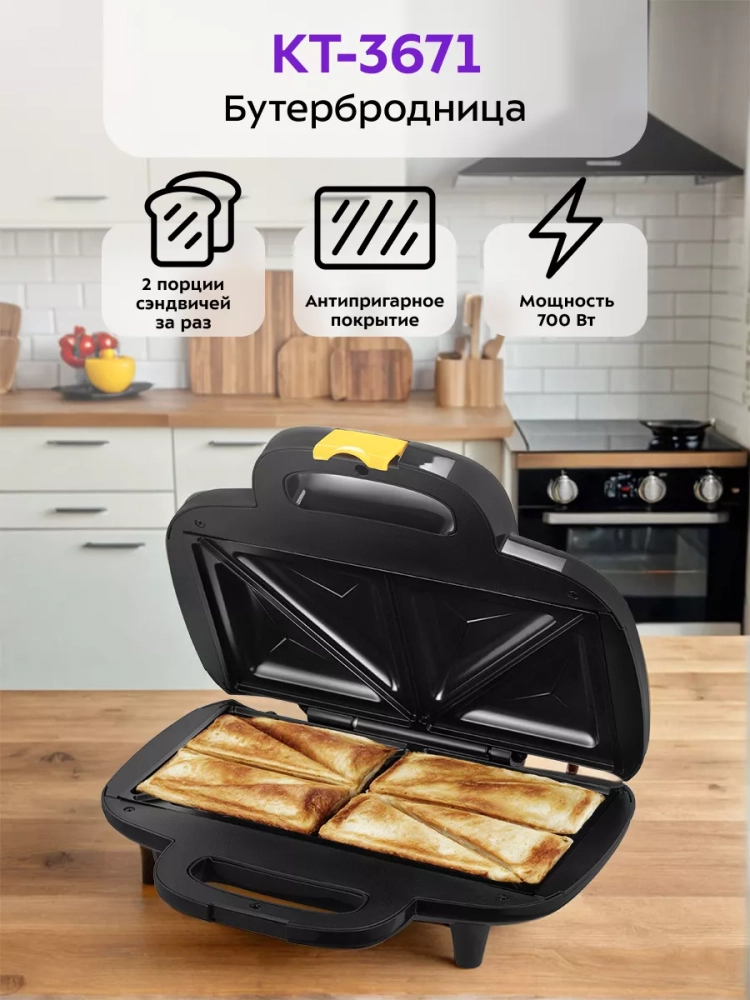 Бутербродница электрическая сендвичница КТ-3671 - 700 Вт