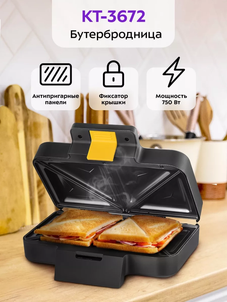 Бутербродница электрическая сендвичница КТ-3672 - 700 Вт