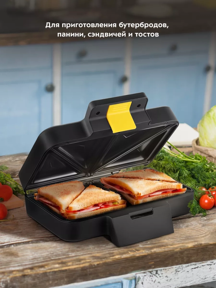 Электрическая бутербродница Kitfort KT-3672 поможет приготовить самые разнообразные бутерброды. В бутерброднице можно готовить не только привычные бутерброды с ветчиной и сыром, но и сладкие бутерброды, например с яблоками и творогом, пирожки из слоеного теста с разнообразными начинками, драники и многое другое. Бутербродница KT-3671 рассчитана на 2 порции бутербродов из хлеба для тостов.
