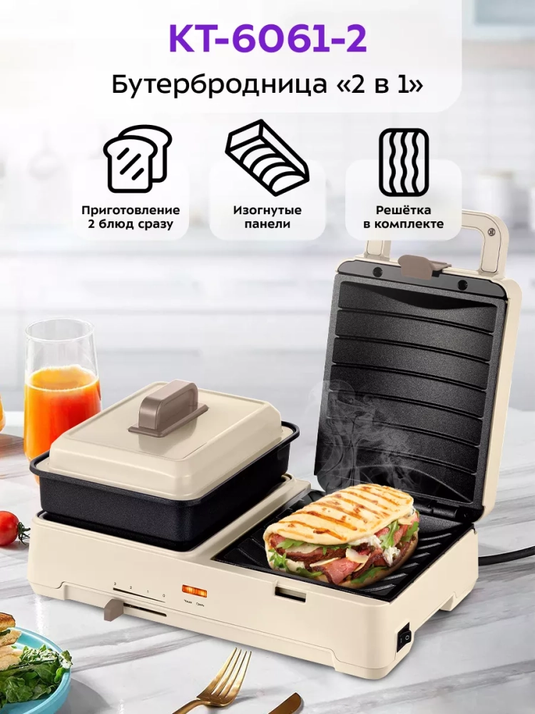 Бутербродница электрическая сендвичница КТ-6061 (2 в 1)