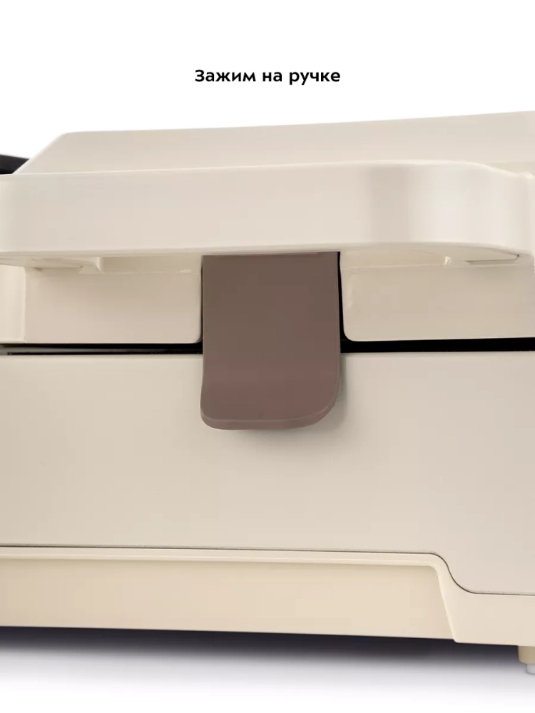Ручка бутербродницы не нагревается во время готовки. Зажим на ручке обеспечивает удобство в приготовлении, хранении и транспортировке.