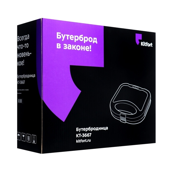 Бутербродница Kitfort КТ-3667, 750 Вт, 27.9х10.8 см, чёрная