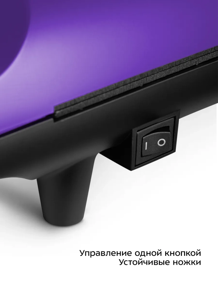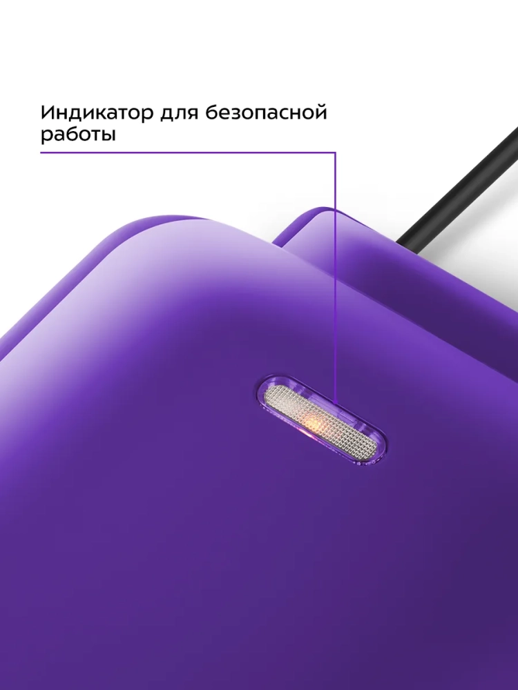 Управление прибором осуществляется с помощью переключателя питания сбоку. Прибор оснащен индикатором нагрева, который расположен на корпусе. На дне прибора есть держатель шнура питания, что обеспечивает удобное хранение устройства.