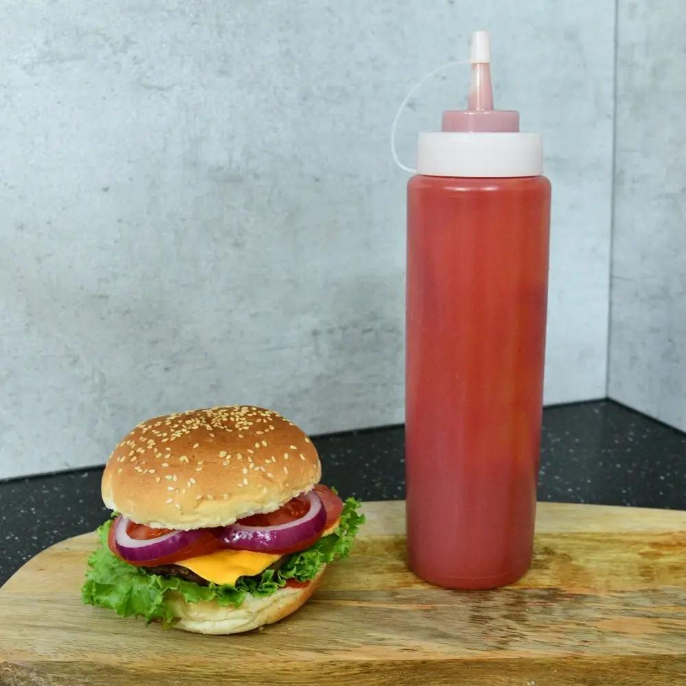 Удобная емкость — бутыль для соуса идеально подходит для хранения в холодильнике домашних соусов, сиропов, теста и других жидкостей. Изделие может использоваться не только для хранения продукции, но и для декора и выпекания ажурных блинчиков. Специальный носик на крышке позволяет наливать тесто для жарки блинчиков или для украшения кондитерских изделий шоколадом или глазурью. Емкость закрывается крышкой, имеет клапан, который защищает содержимое от попадания воздуха внутрь.