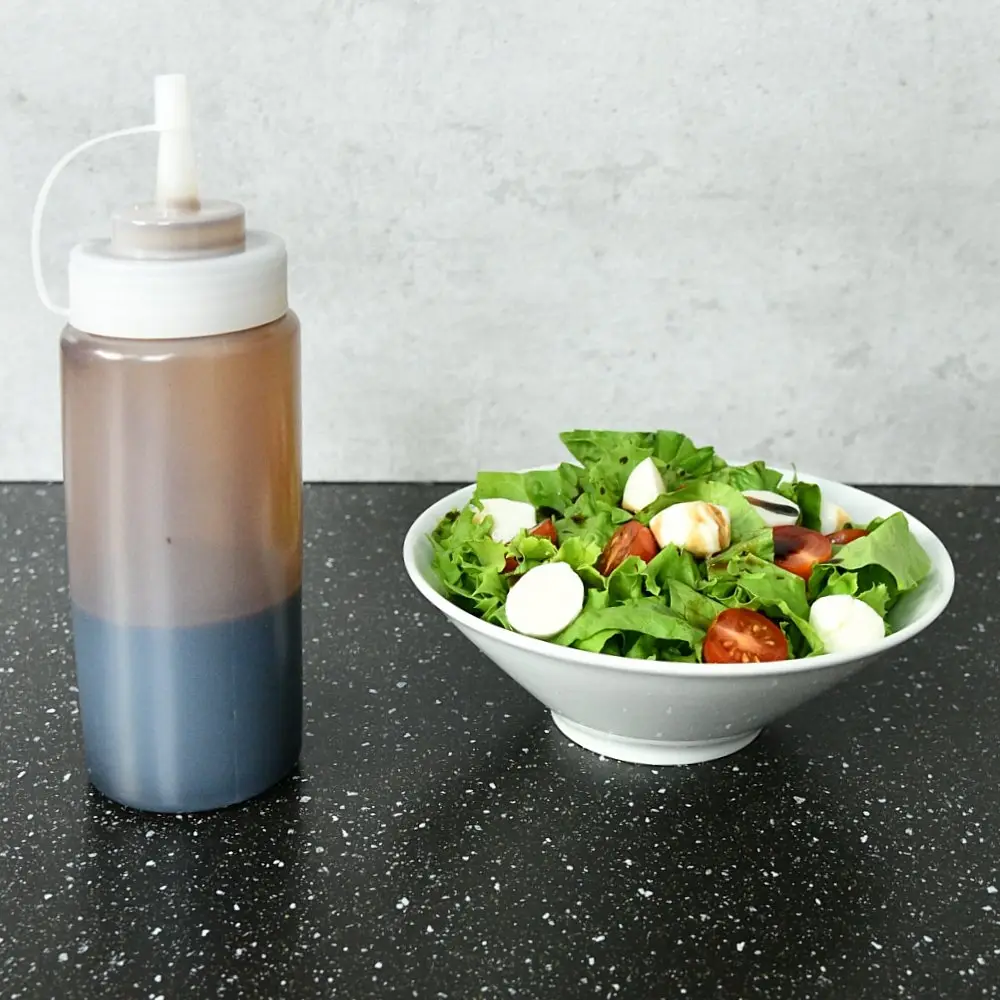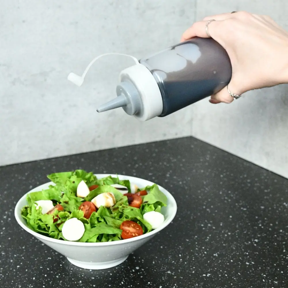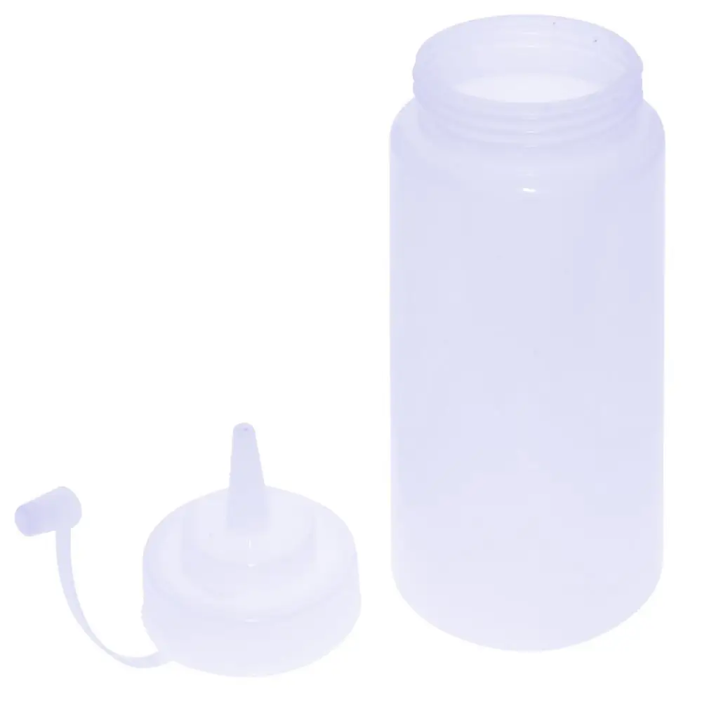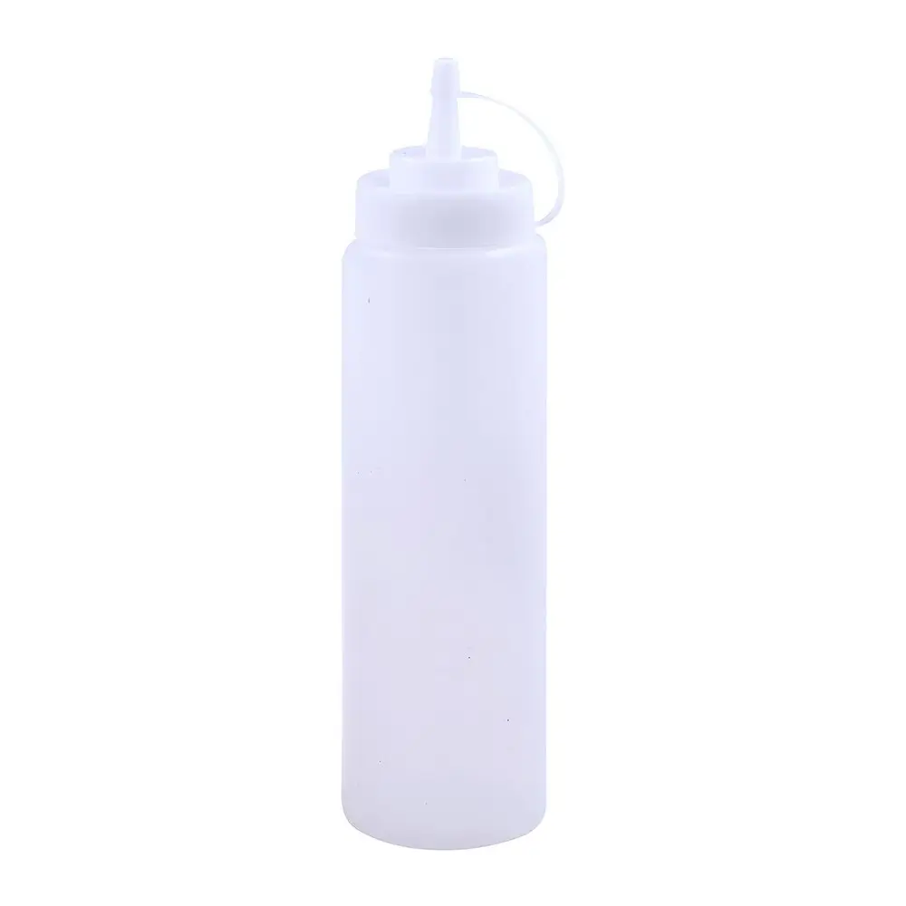Удобная емкость для хранения соусов, теста, сиропов и других жидких продуктов в холодильнике. Бутыль имеет клапан, препятствующий попаданию воздуха и порчи содержимого. Тонкий носик позволяет использовать бутыль для жидкого теста при приготовлении ажурных блинчиков и оладий. Носик также позволяет декорировать выпечку кремом или глазурью. После использования промойте его в теплой воде, можно с жидкими моющими средствами и просушите. Изготовлено из пластмассы (полиэтилен, полипропилен).