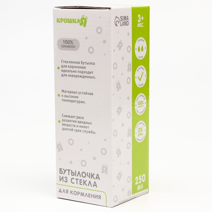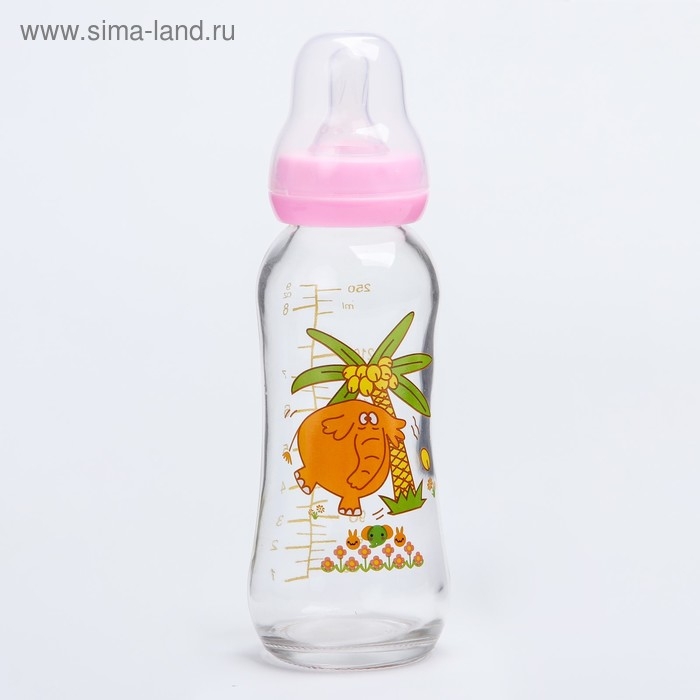 Бутылочка для кормления, классическое горло, 250 мл., от 3 мес., стекло, цвет МИКС
