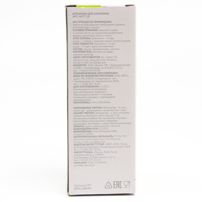 Бутылочка имеет мягкую и гибкую соску, которая не слипнется и будет удобно располагаться у малыша во рту.
