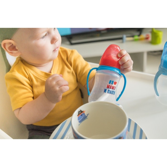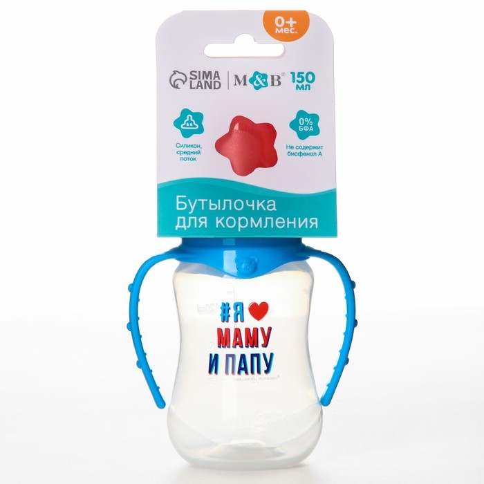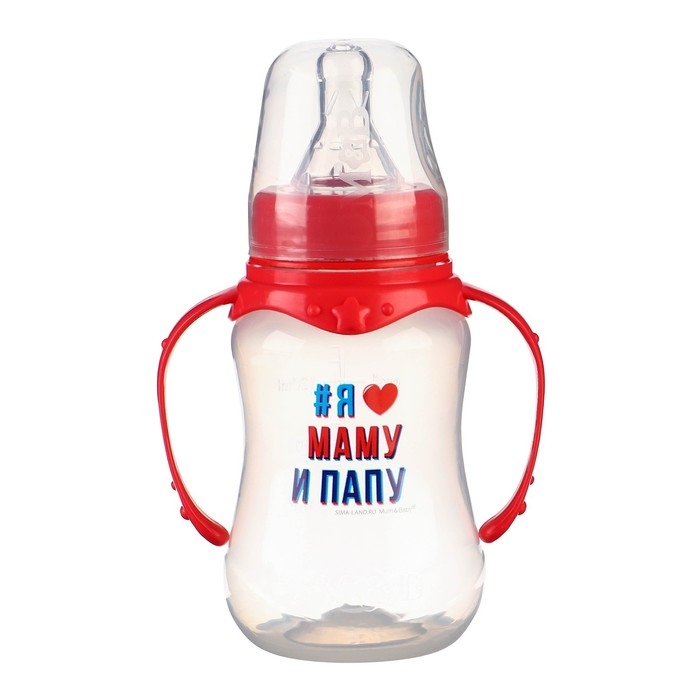 Бутылочка для кормления «Люблю маму и папу», классическое горло, 150 мл., от 0 мес., приталенная, с ручками
