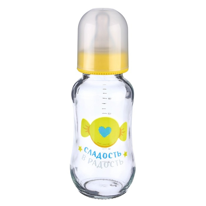 Бутылочка для кормления стекло «Мишка Принц», классическое горло, средний поток, 180 мл., от 3 мес.