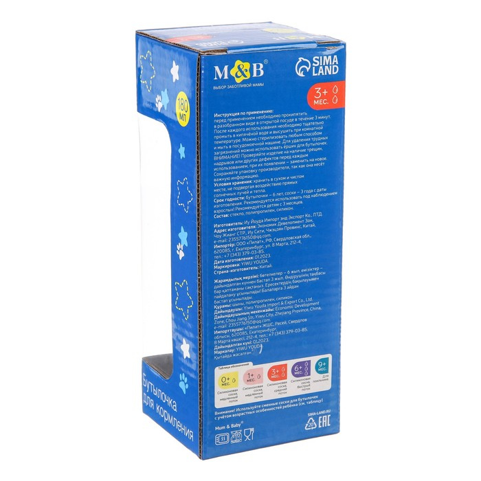 Бутылочка имеет мягкую и гибкую соску, которая не слипнется и будет удобно располагаться у малыша во рту.