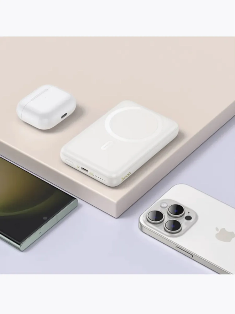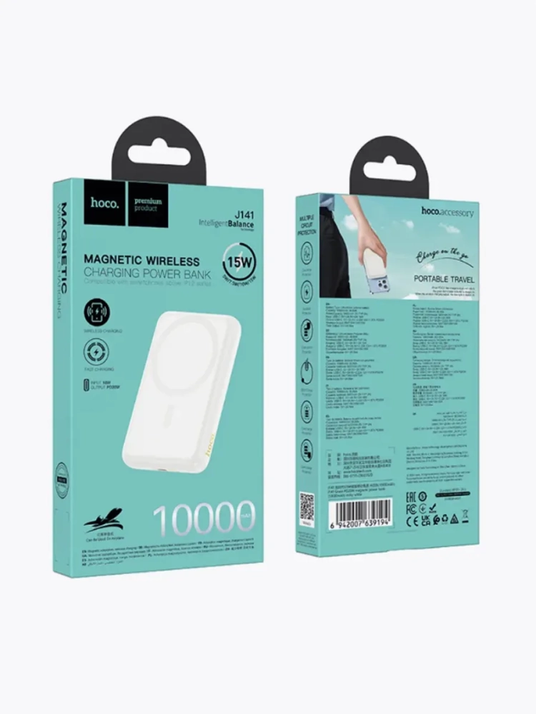 Hoco J141 Power Bank — ваш идеальный спутник для энергии и стиля!Поддержка MagSafe и беспроводная зарядка QiHoco J141 разработан с поддержкой MagSafe, идеально подходящей для iPhone 12, iPhone 13, iPhone 14, iPhone 15 и новейших iPhone 16. Кроме того, он совместим с другими устройствами, поддерживающими беспроводную зарядку, включая Samsung Galaxy S23, S22, S21, а также популярные модели Xiaomi, Huawei, и Google Pixel — чтобы вы могли заряжать свои гаджеты беспроводным способом.Преимущества Hoco J141:Мощность 10000mAh — энергоемкость на длительное время! Зарядите смартфон, планшет или наушники полностью не один раз.Быстрая зарядка — вход Type-C 18 Вт и выход до 20 Вт для быстрой подзарядки самого power bank и ваших устройств.Беспроводной выход до 15 Вт — поддержка MagSafe и Qi для плавной и удобной зарядки.LED-индикатор емкости — всегда на виду уровень заряда.Поддержка популярных протоколов быстрой зарядки — оптимальная зарядка для каждого устройства!Ультратонкий, всего 17.5 мм! Прочный корпус из ABS-пластика и полиуретана делает его легким и устойчивым к повседневным нагрузкам. Стильный и компактный Hoco J141 легко помещается в сумке или кармане, всегда готов обеспечить заряд для вашего iPhone, Samsung Galaxy, Xiaomi, Huawei или Google Pixel, не занимая лишнего места.С Hoco J141 ваша техника всегда в заряде, где бы вы ни были!