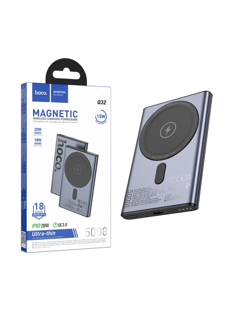 Быстрый тонкий Magsafe магнитный повербанк 5000 m*Ah Q32
