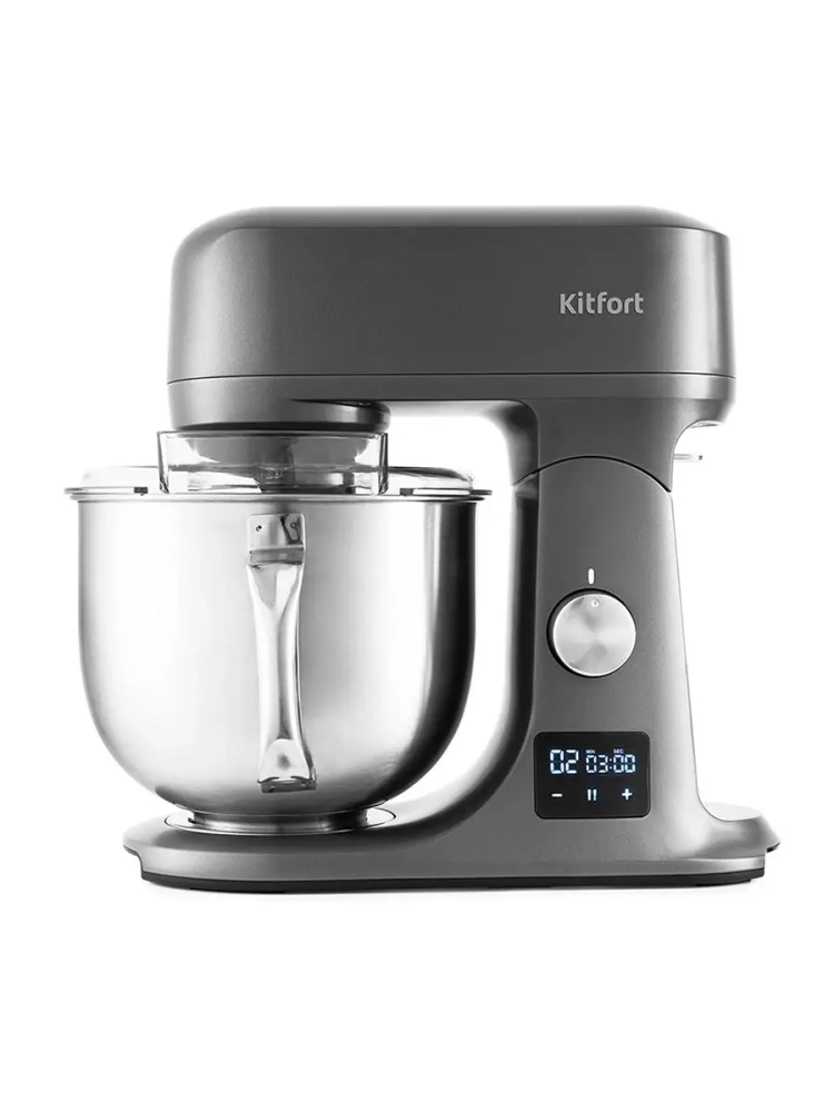 Ультрасовременный, мощный и тихий цельнометаллический миксер Kitfort КТ-1328 поможет вам смешать ингредиенты, взбить яичный белок или сливки, приготовить картофельное пюре, соус, крем, мусс, замесить жидкое тесто для блинов и крутое для пельменей и пирогов. Чаша миксера с удобной ручкой имеет емкость 5 литров и изготовлена из нержавеющей стали. Установить нужную скорость и включить импульсный режим вы можете регулятором скорости. Миксер оснащен таймером прямого и обратного отсчета и дисплеем с сенсорными кнопками. На дисплее отображается время таймера, а кнопками вы можете установить время работы и включить паузу. По истечении установленного времени миксер выключится сам. Таймер прямого отсчета выключает мотор через 10 минут, поэтому, если вы забыли про включенный миксер, он выключится автоматически.