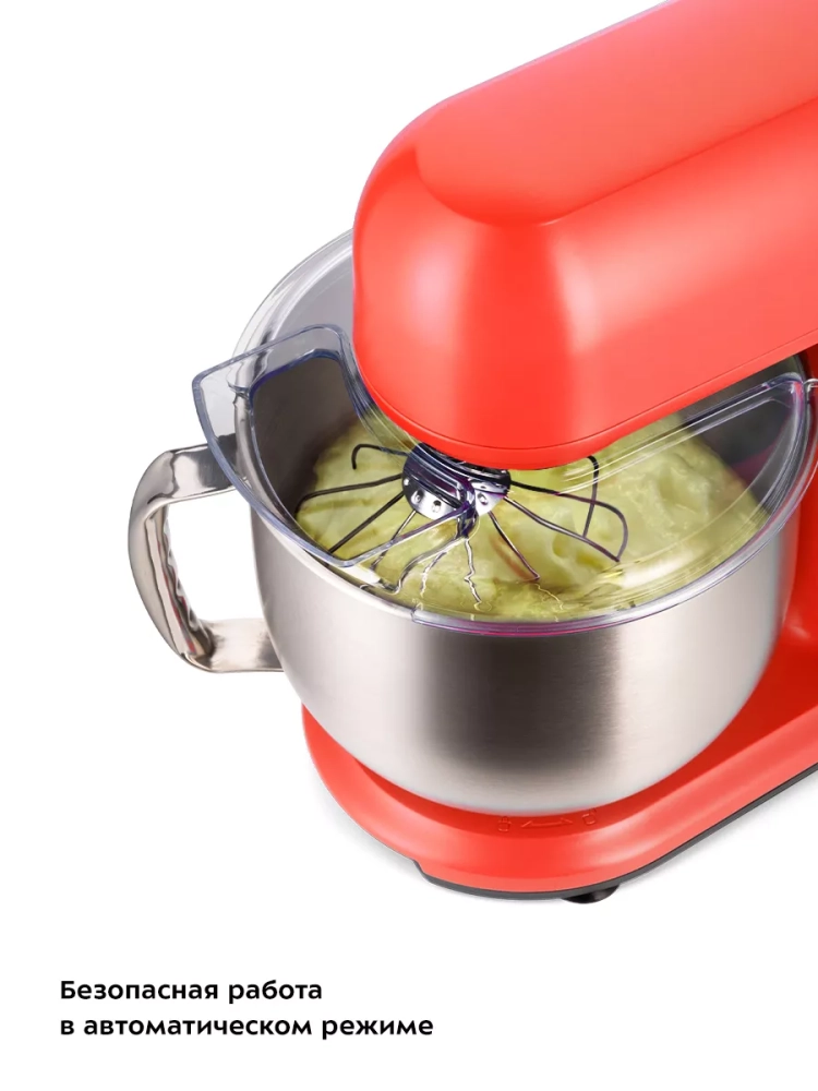 Миксер оснащен планетарной системой смешивания, которая обеспечивает идеальное качество смешивания и ровную консистенцию без комков. Прорезиненные ножки с присосками прочно фиксируют миксер на столе.