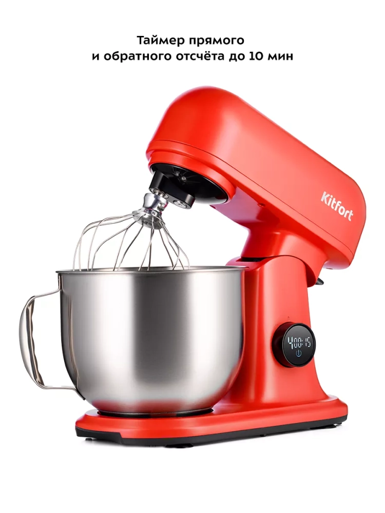 Миксер оснащен таймерами прямого и обратного отсчета. По таймеру прямого отсчета вы можете засечь время, которое требуется для взбивания или замешивания ингредиентов. Таймер обратного отсчета позволяет установить время смешивания ингредиентов — от 10 секунд до 10 минут, а по истечении выставленного времени миксер выключится сам.