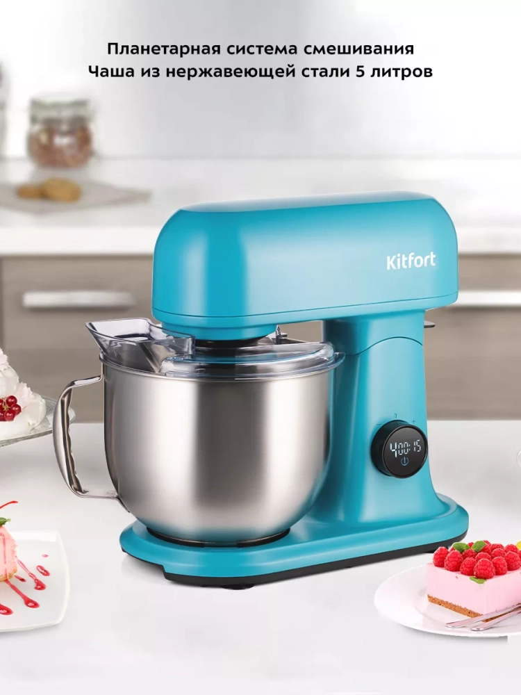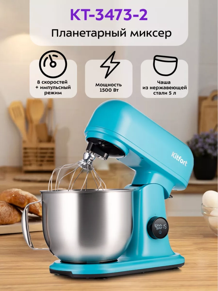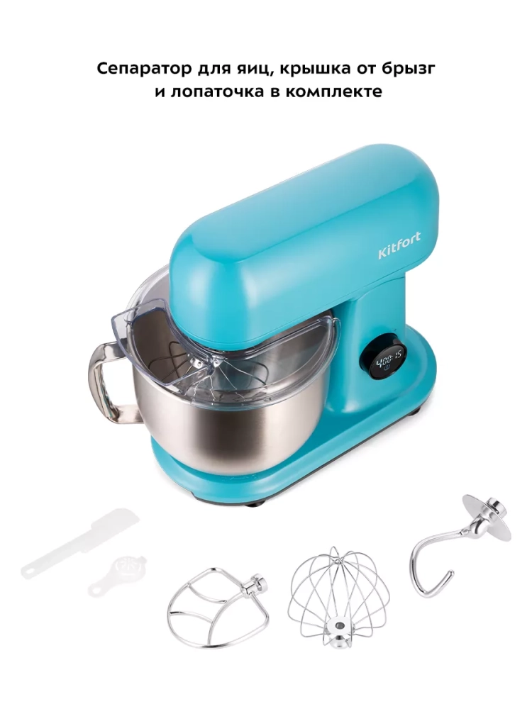 Планетарный миксер Kitfort КТ-3473 поможет вам смешать ингредиенты, взбить яичный белок или сливки, приготовить картофельное пюре, соус, крем, мусс, замесить жидкое тесто для блинов и крутое для пельменей и пирогов.