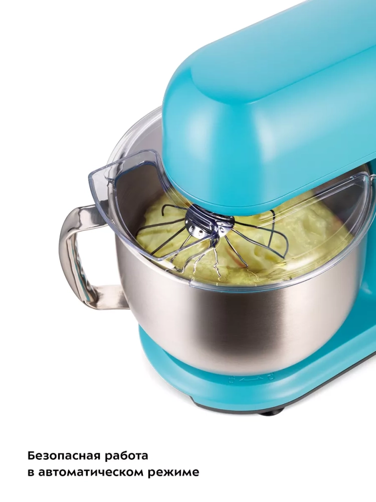 Миксер оснащен планетарной системой смешивания, которая обеспечивает идеальное качество смешивания и ровную консистенцию без комков. Прорезиненные ножки с присосками прочно фиксируют миксер на столе.